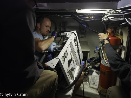 I should not forget the watermaker. The watermaker is our own little boat-sized desalinization plant. Ours was not working very well and was impossible to do maintenance on. It weights over 100 pounds and lives in the engine room, always a tight space to work in and get things in and out. Jim took it home and completely rebuilt it, creating some brackets to move some of the parts out of the compact housing to make it serviceable while in place.